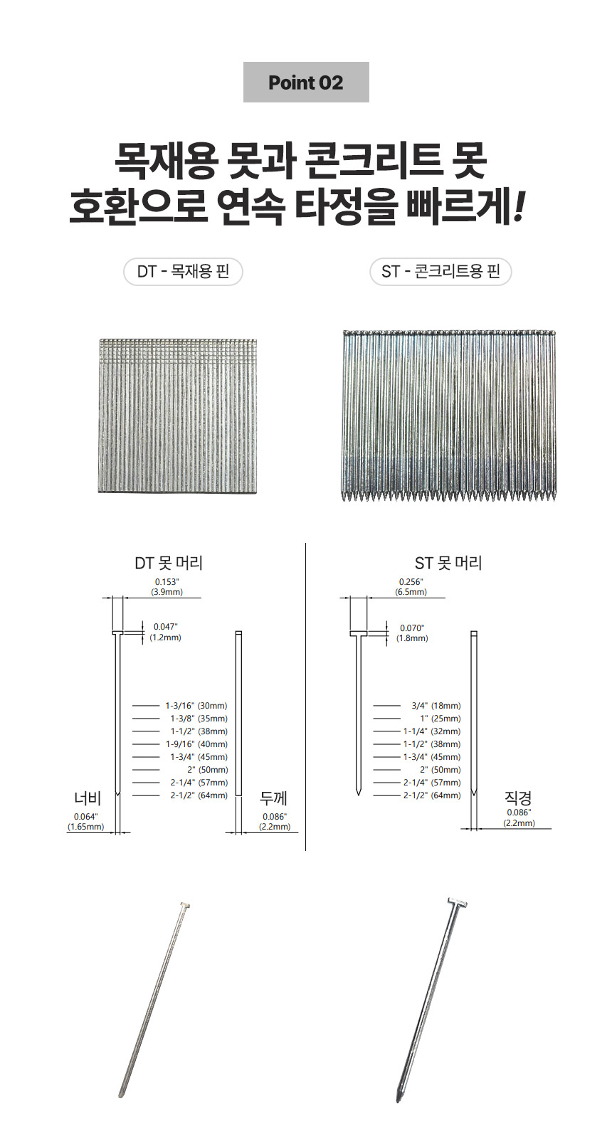 - DT단위 : 30mm~64mm, ST단위 : 18mm~64mm