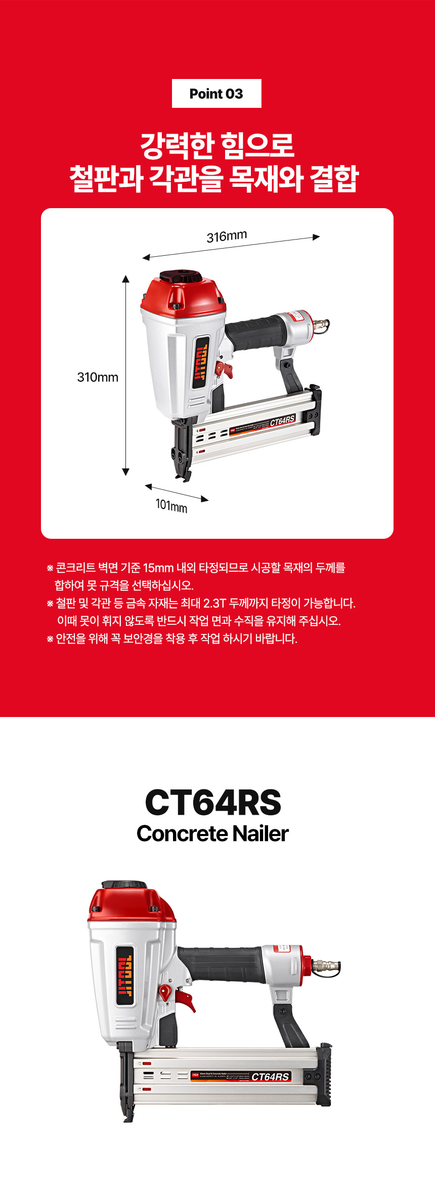 콘크리트 핀 사용시 반드시 목재와 같이 사용하셔야 합니다.